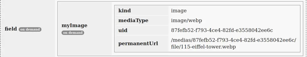 "storedOn": "leaf" : dans le cas d'un site multilingue, la même image sera partagée par toutes les traductions du document.