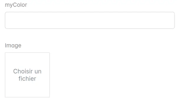 , sous le "label", ajouter :"fields": { "myColor": { "label": "Le champ de ma couleur" } }