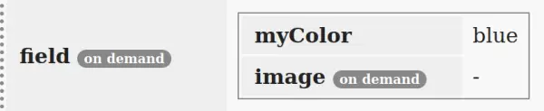 "fields": [ { "name": "myColor", "storedOn": "leaf", "storedAs": "varchar", "dataType": "string", "visibility": ["table", "overview", "feed"] }, "image" ],