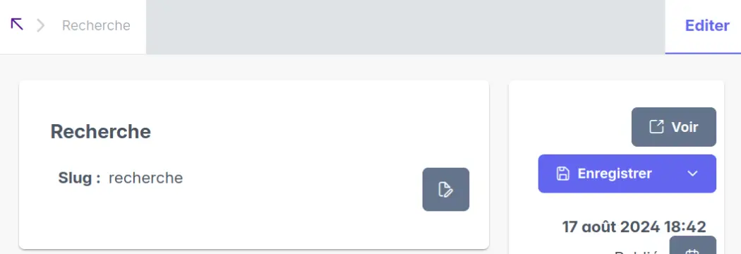 Notamment, la plupart du temps, les pages de recherche et de contact n'ont pas besoin d'une image mise en avant. L'effet de cette propriété sur le back-office est de faire disparaître le champ d'upload de l'image mise en avant :